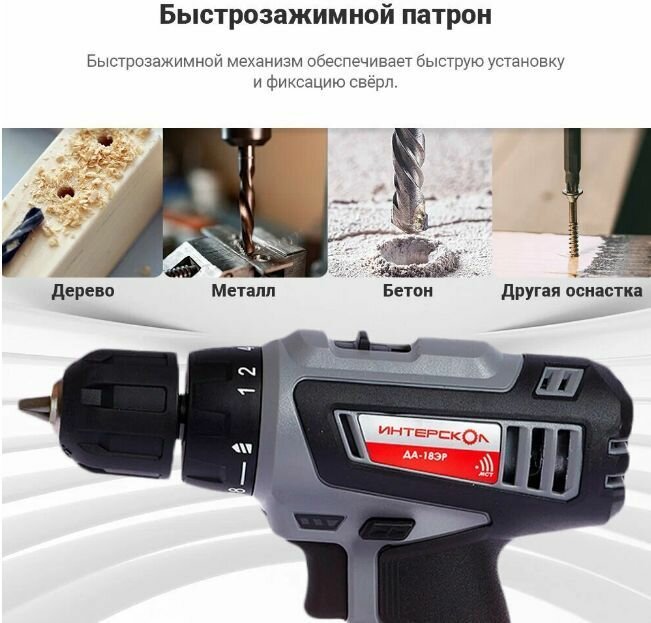 Ниже Вы можете прочитать отзывы на Дрель-шуруповерт аккумуляторная ИНТЕРСКОЛ ДА-18ЭР промо (18В, 2акк*2Ач Li-ion, 35Нм, 2скорости, подсветка, 1,1кг, экокейс), ознакомится с подробными характеристиками, посмотреть интересные обзоры и фотографии на Дрель-шуруповерт аккумуляторная ИНТЕРСКОЛ ДА-18ЭР промо (18В, 2акк*2Ач Li-ion, 35Нм, 2скорости, подсветка, 1,1кг, экокейс).