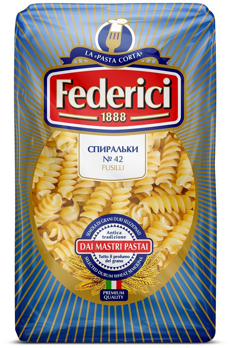 Макароны FEDERICI Спиральки №42, группа А высший сорт, 500г