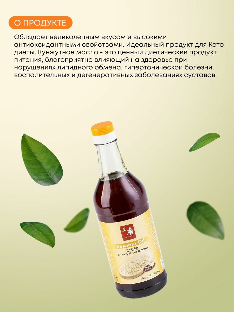 Кунжутное масло для еды нерафинированное, первый горячий отжим, REAL TANG, 500 мл.