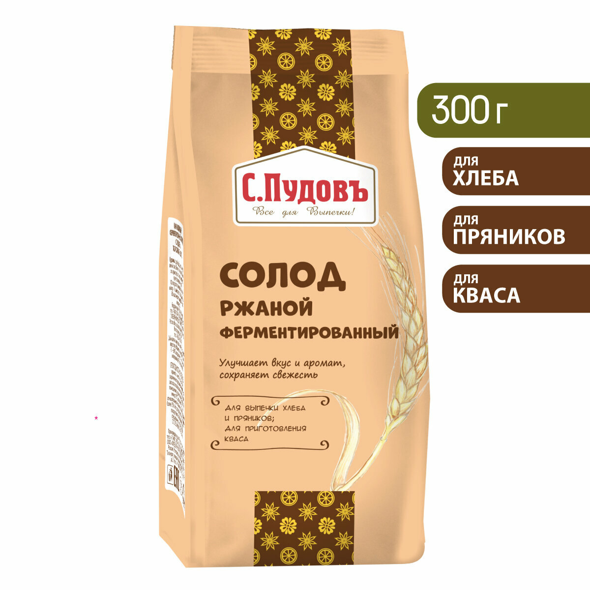 Солод ржаной ферментированный «С. Пудовъ», 300 г
