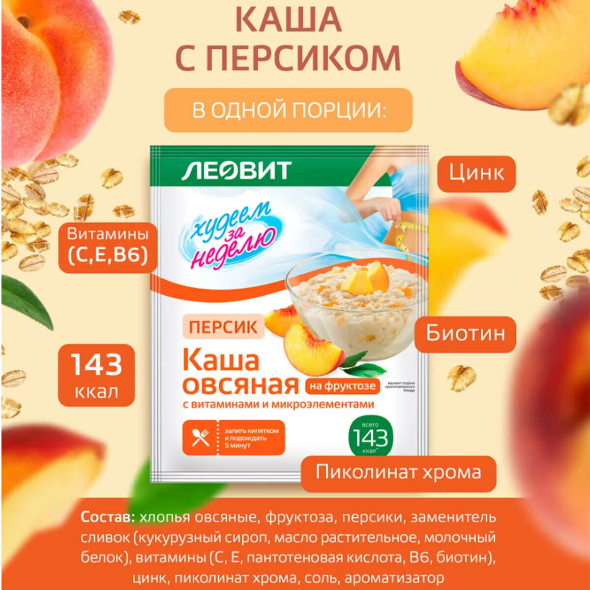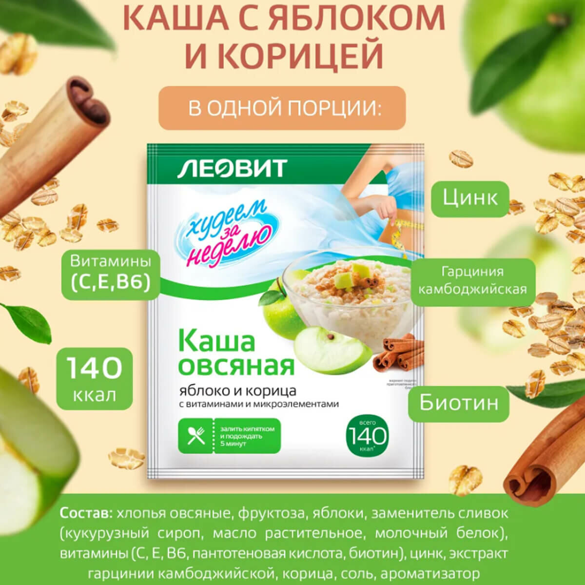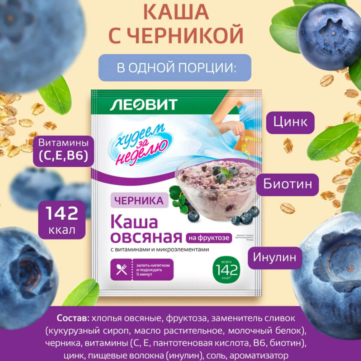 Каша овсяная Ассорти Худеем за неделю, 7 пакетов по 40 г, леовит интересное: