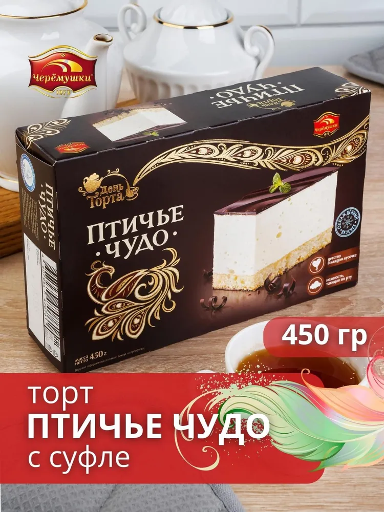 Ниже Вы можете прочитать отзывы на Черемушки/Торт суфле "Птичье чудо" 450г/Вкус, знакомый с детства!, ознакомится с подробными характеристиками, посмотреть интересные обзоры и фотографии на Черемушки/Торт суфле "Птичье чудо" 450г/Вкус, знакомый с детства!.