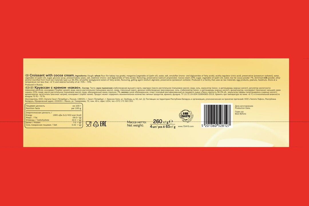 Круасcаны 7 days какао, 4шт х 65г интересное: