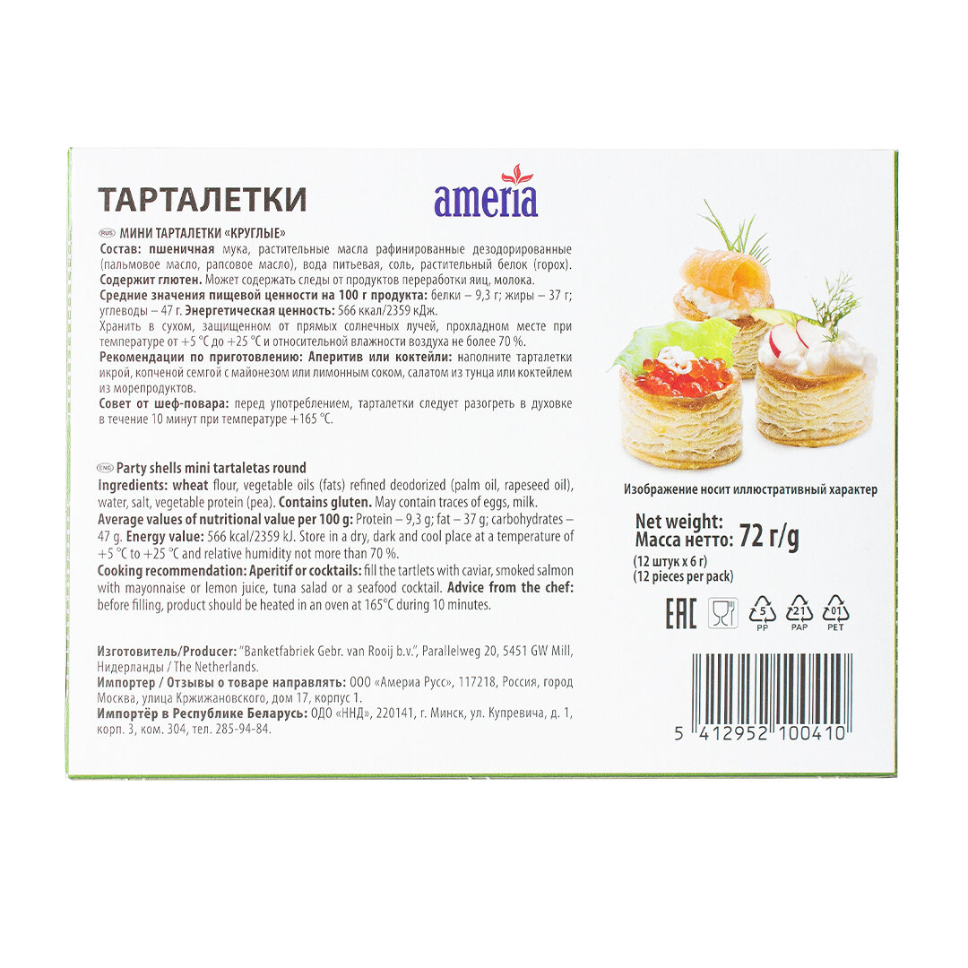 Купить Тарталетки AMERIA мини круглые (12шт) 72г