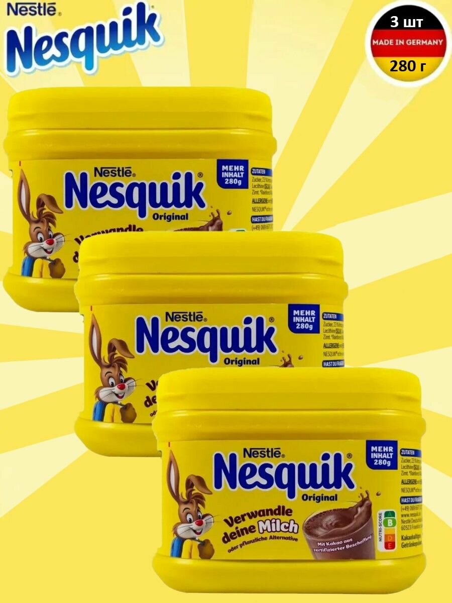 Купить Какао напиток быстрорастворимый Nesquik, Nestle, 3 шт по 280 гр, Несквик детям