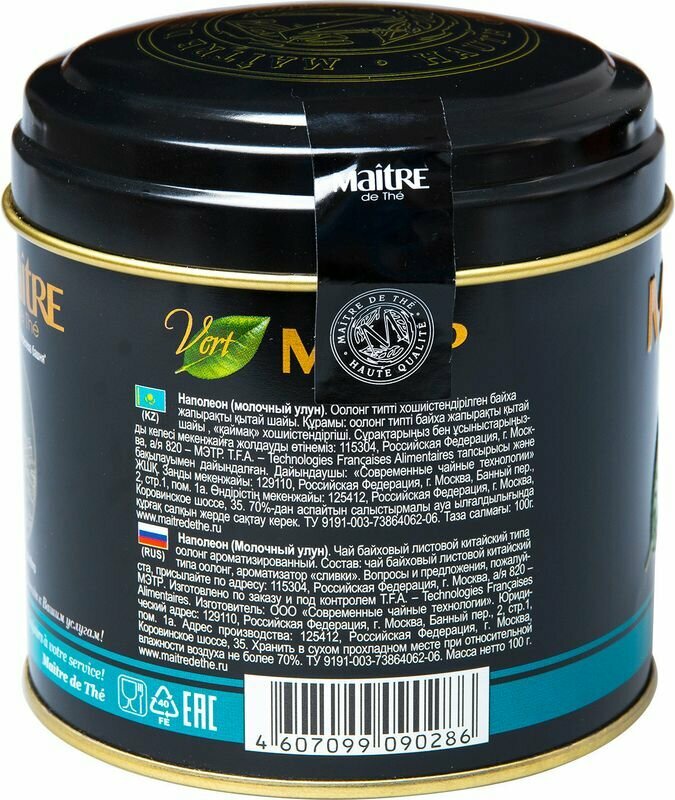 Купить Чай зеленый листовой MAITRE de The "Наполеон" Молочный оолонг 100г жестяная банка подарочный Мэтр