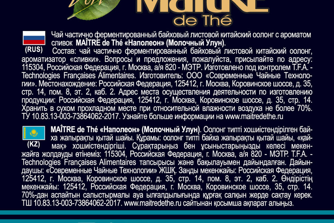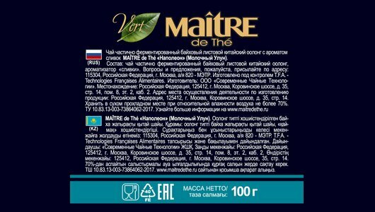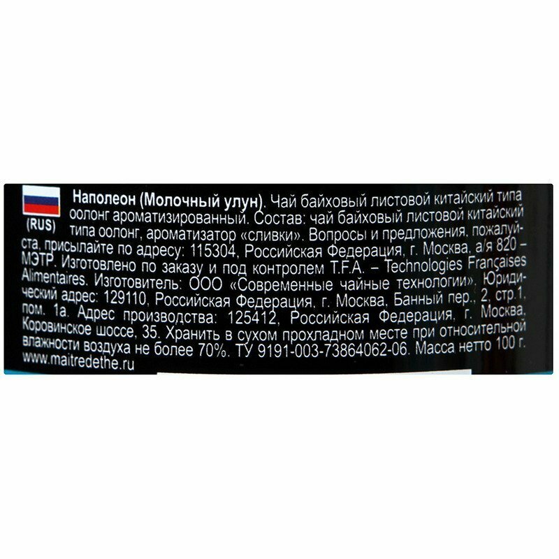 СохранитьЧай зеленый листовой MAITRE de The "Наполеон" Молочный оолонг 100г жестяная банка подарочный Мэтр интересное: