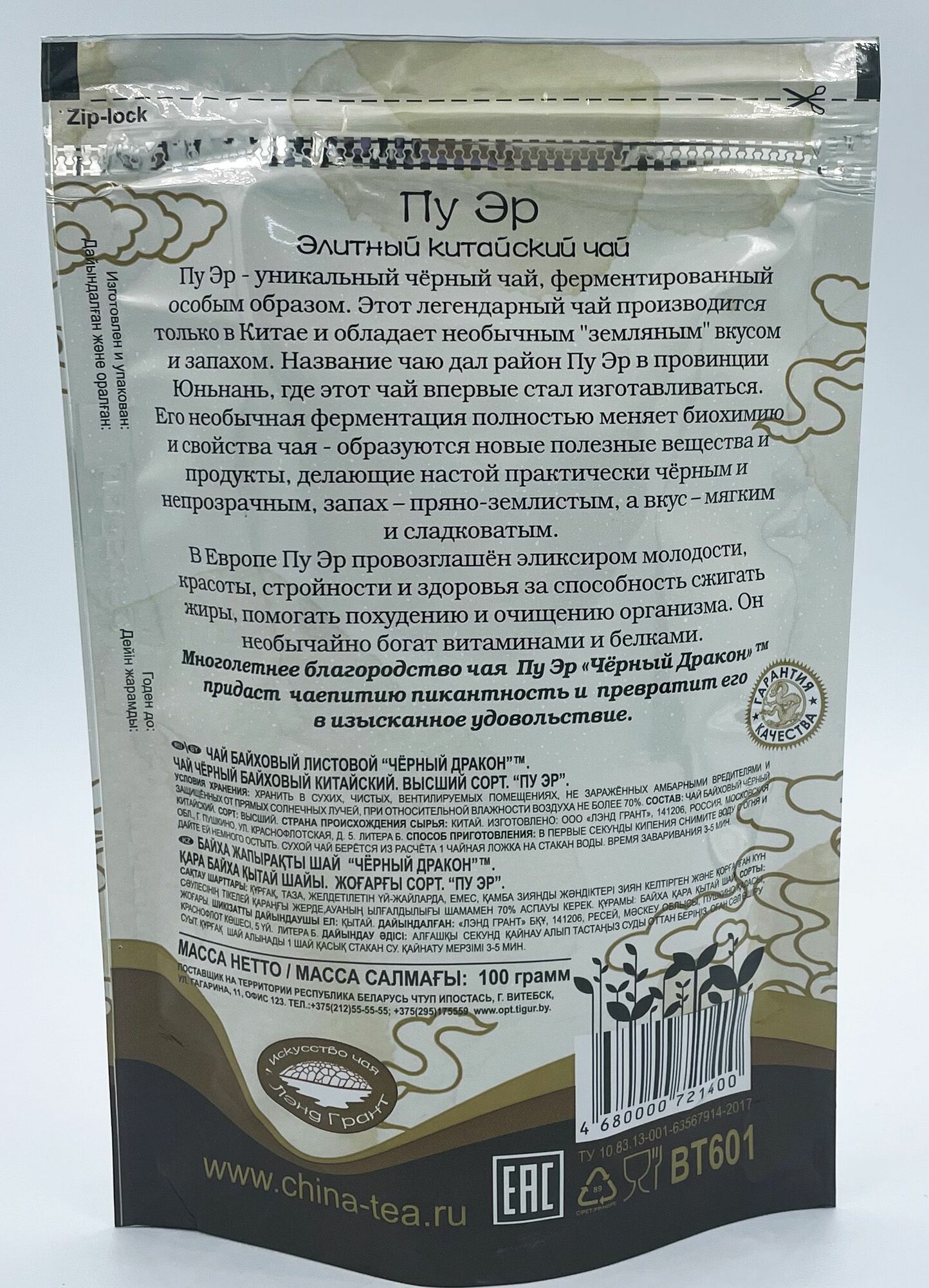 Чай Черный Дракон 100г. (черный) "Пу Эр" (BT601) м/у