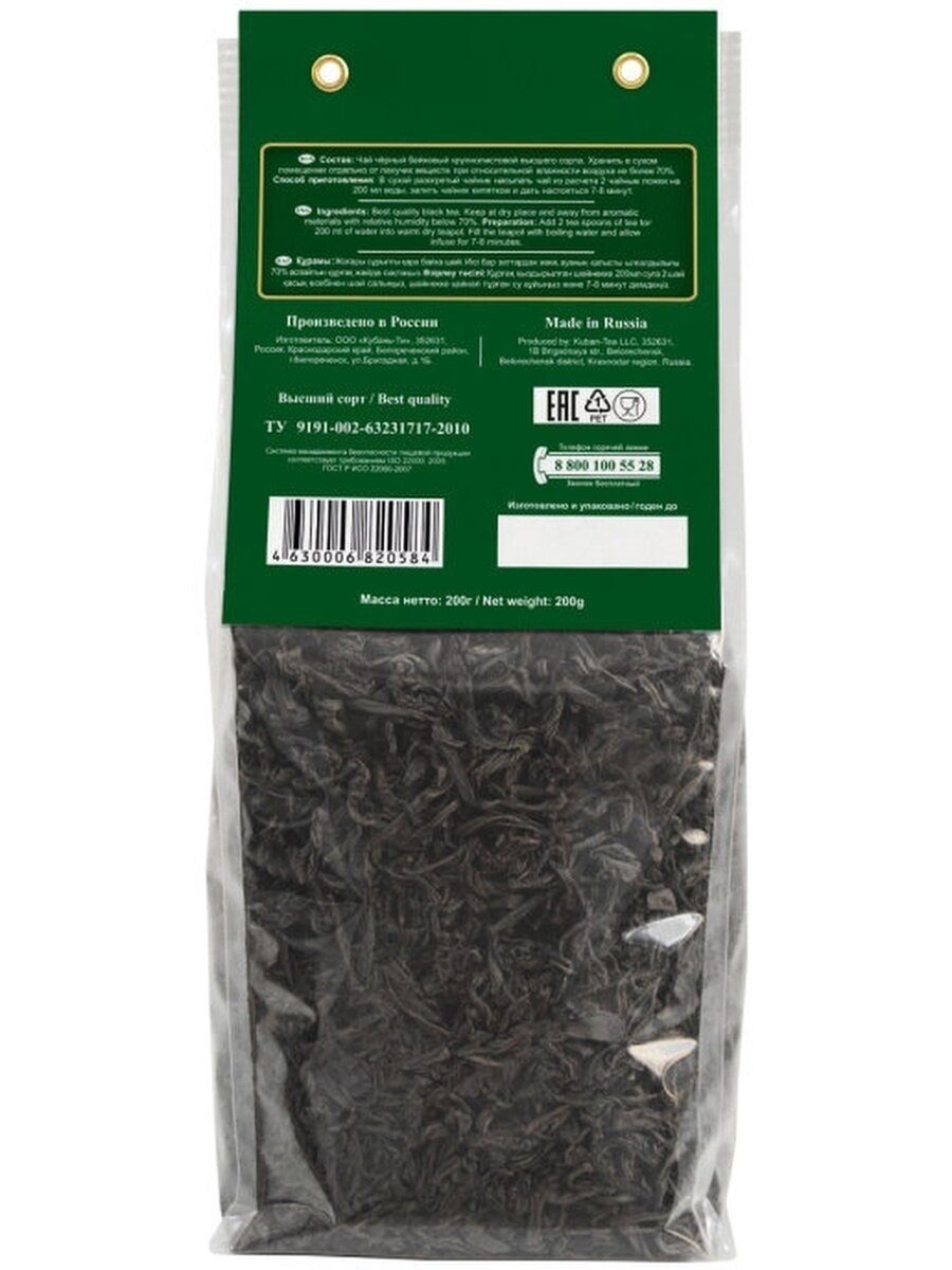 Чай черный Кубань байховый, 200 г, 1 пак.