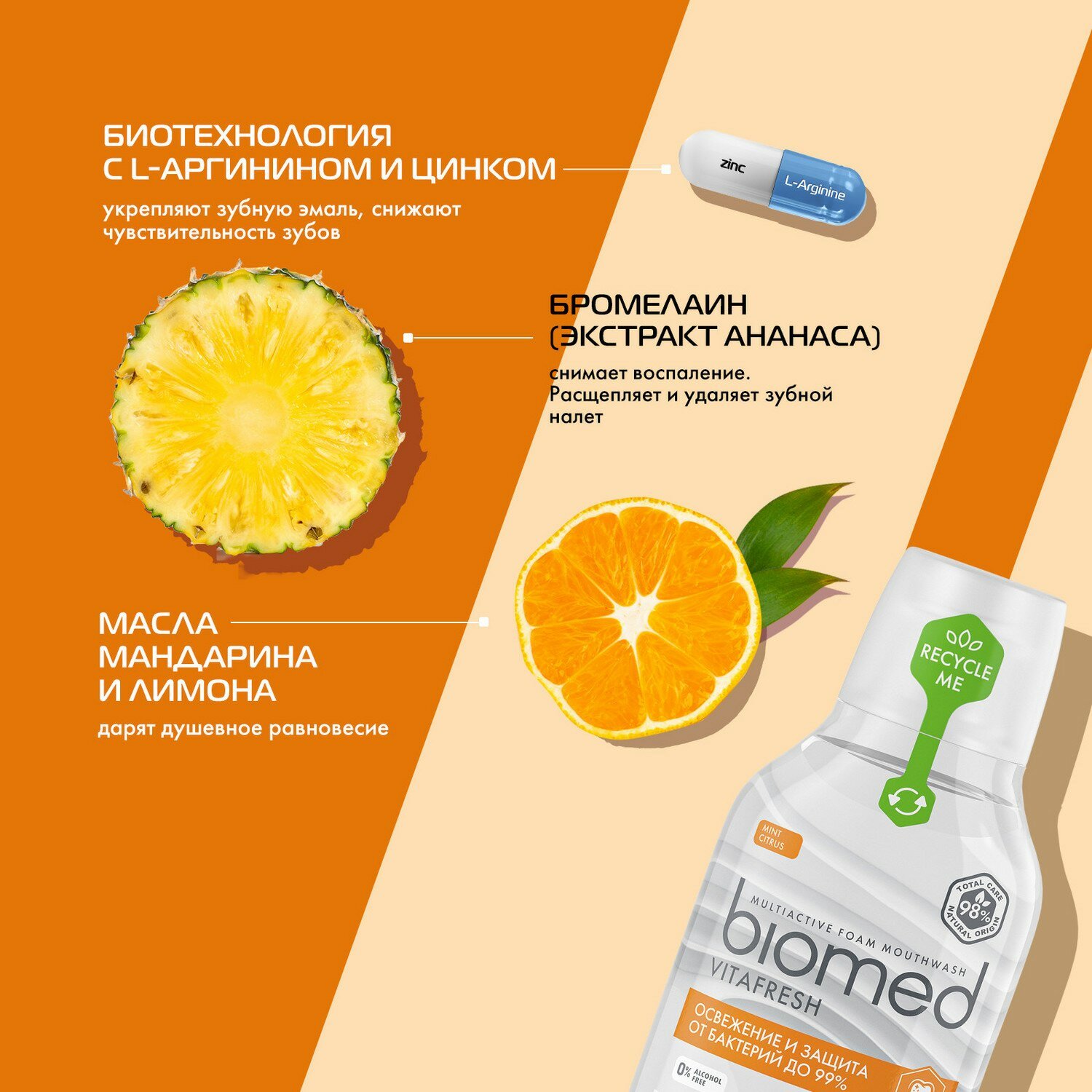 Biomed VITAFRESH Ополаскиватель для полости рта с эфирными маслами цитрусов, 500 мл