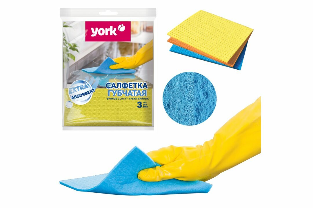СохранитьГубчатая салфетка "YORK", 3 шт в упаковке, супервпитывающие интересное: