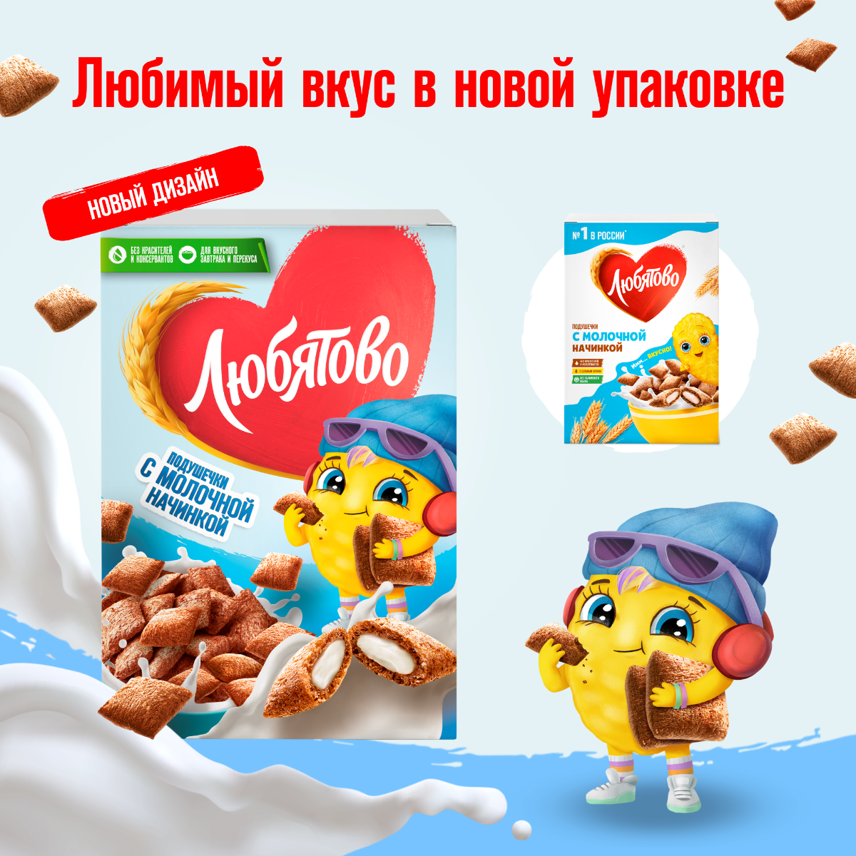 Готовый завтрак любятово Подушечки с молочной начинкой, 220г