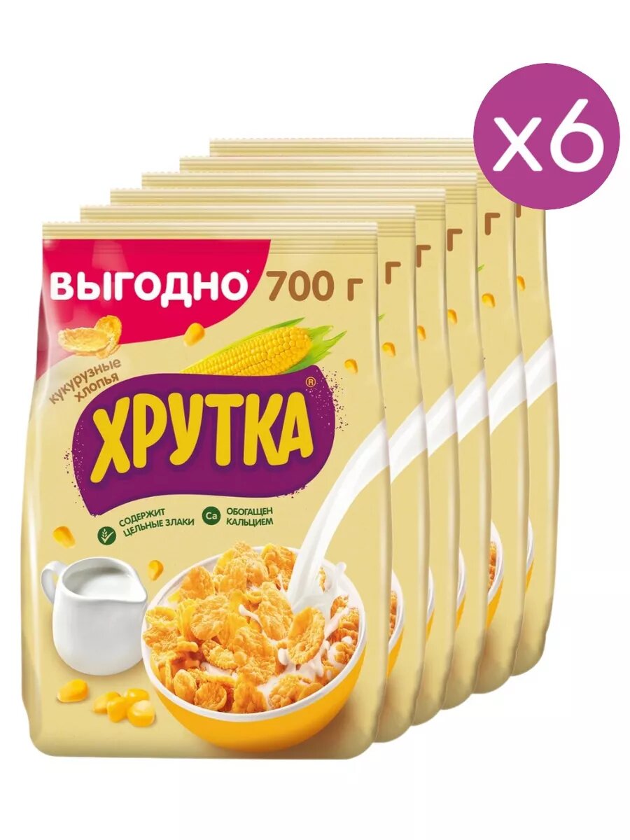Готовый завтрак "Хрутка" хлопья кукурузные хрустящие обогащенные кальцием 700 г 6 шт