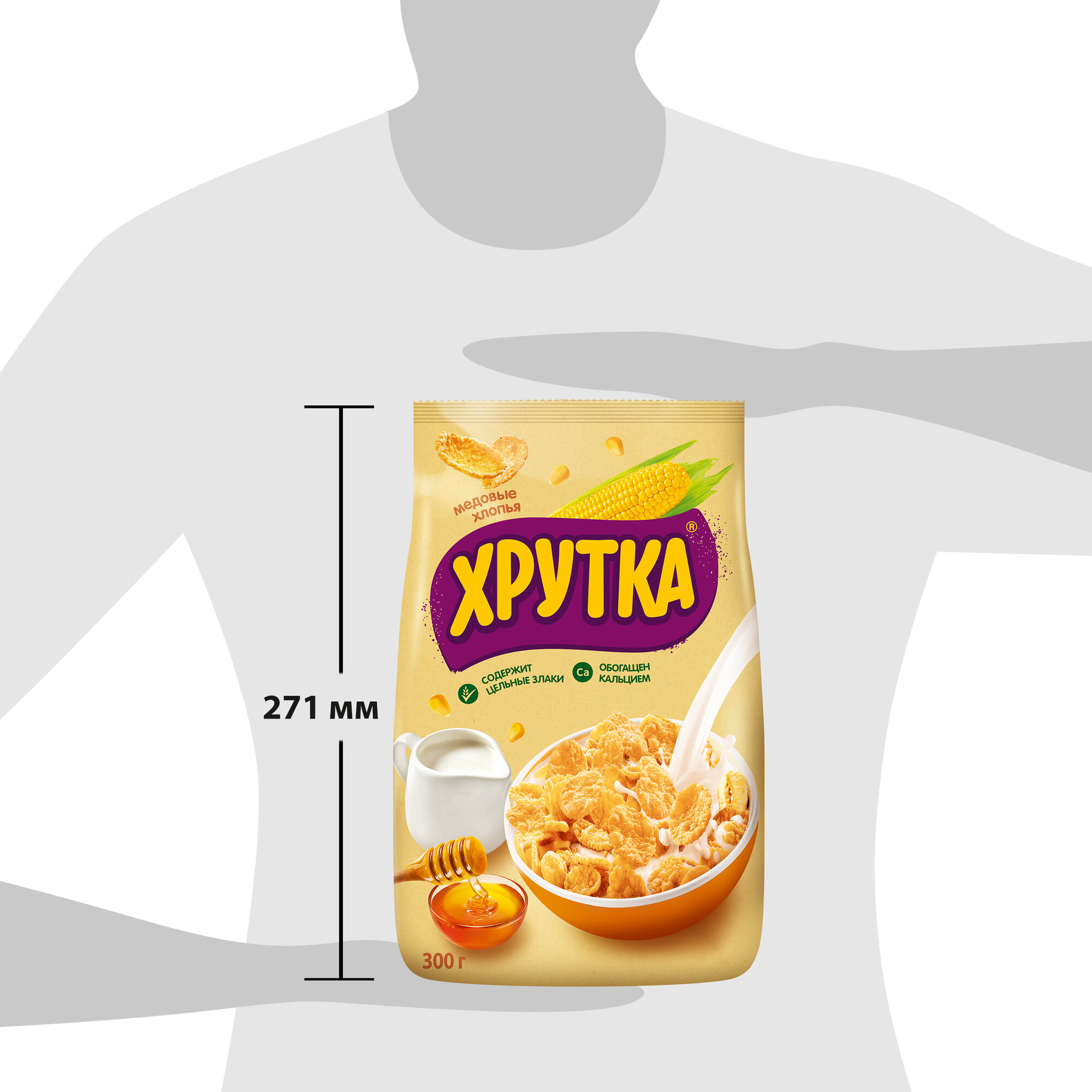 Хрутка Хлопья медовые хрустящие, обогащённые кальцием, 300 гр
