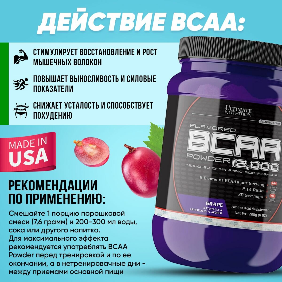 Купить Ultimate BCAA 12000 Powder Flavored 228g (Виноград)