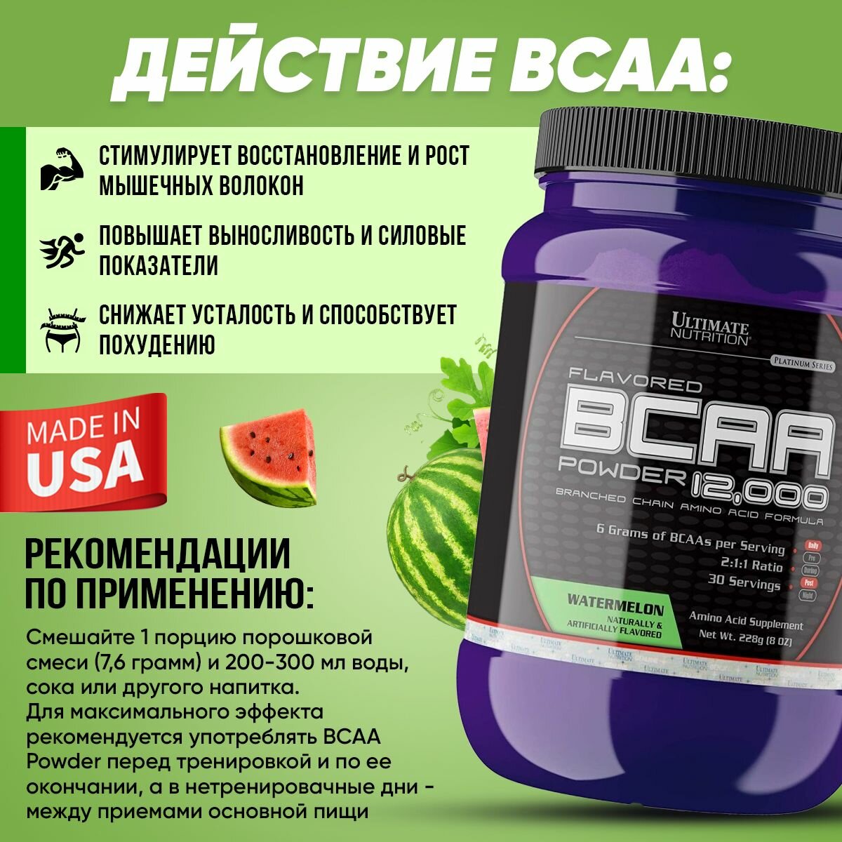 Ultimate BCAA 12000 Powder Flavored 228g (Watermelon), Аминокислотный комплекс бца, 228 грамм (Арбуз)