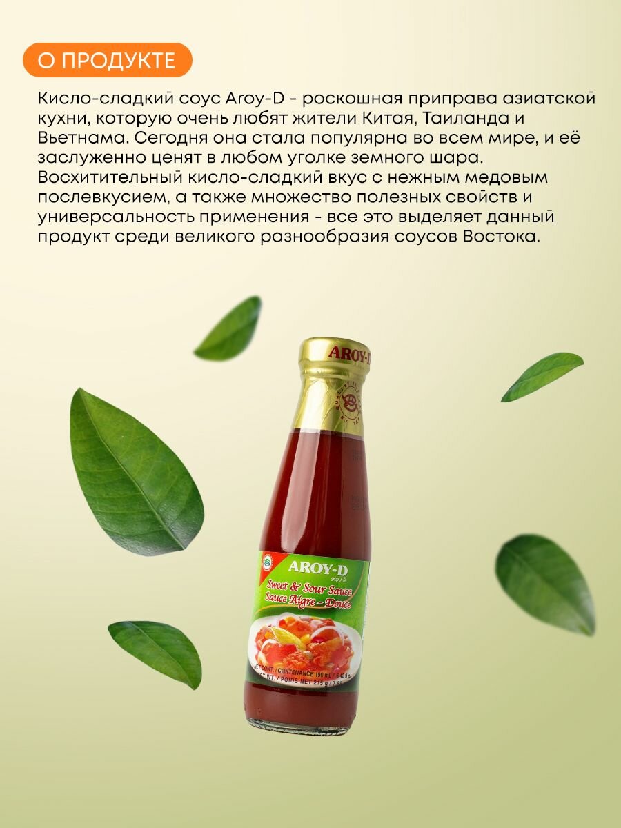 Aroy-D соус "Кисло-сладкий/Sweet and sour sauce", 215гр интересное: