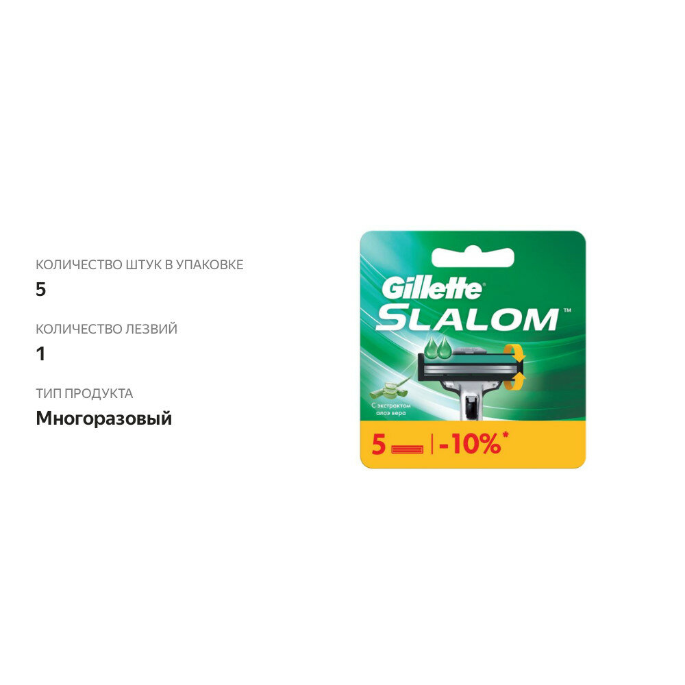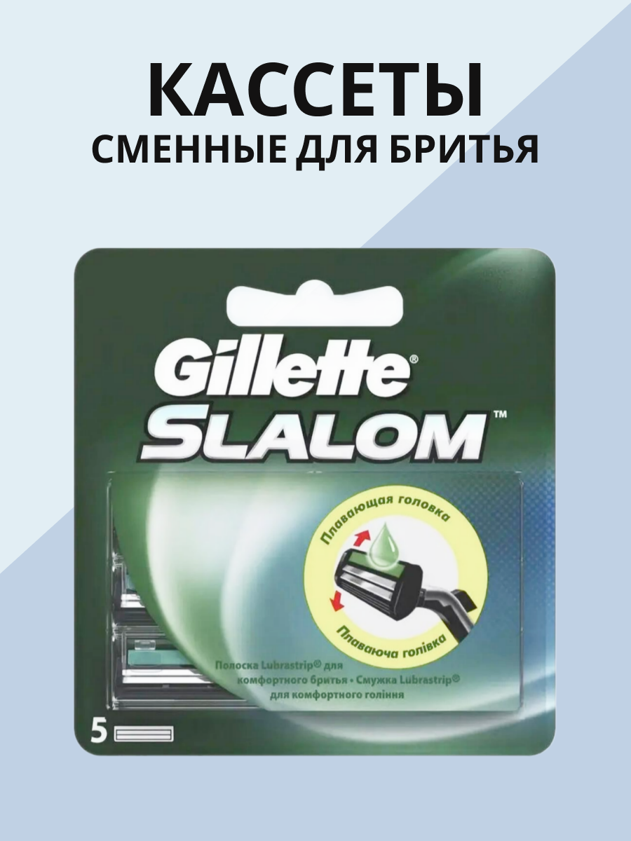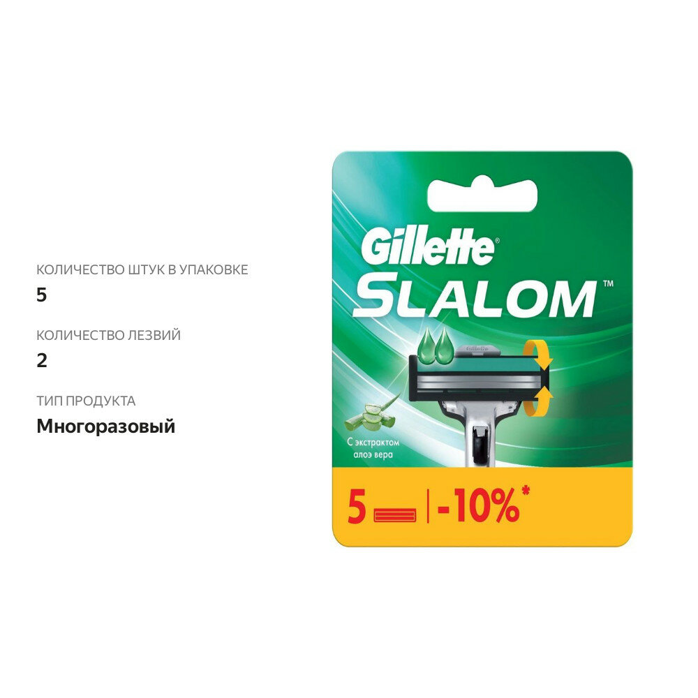 GILLETTE Slalom Сменные кассеты для бритья с 2 лезвиями, мужские, 5 шт