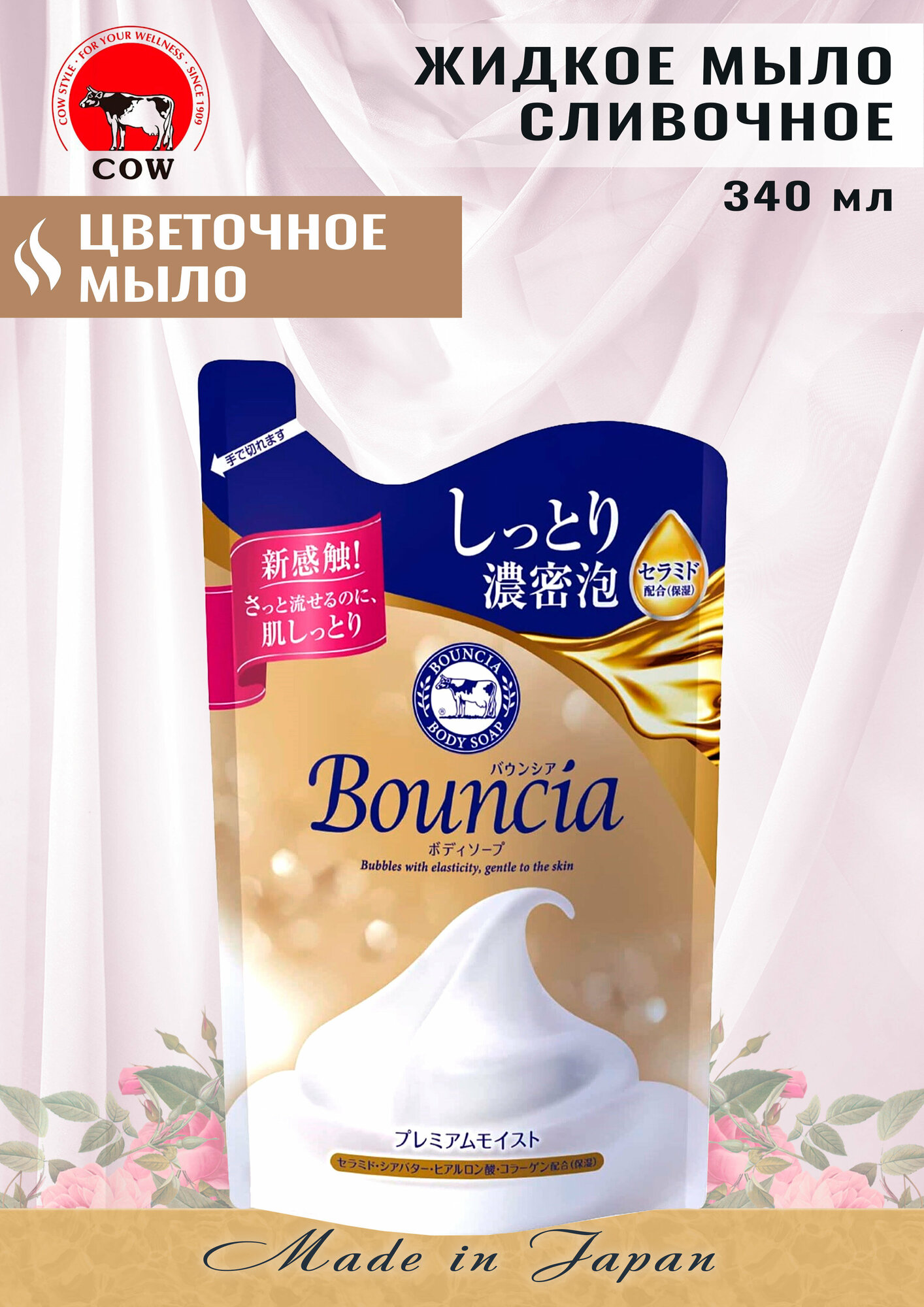 Жидкое мыло для тела и рук Cow Brand Bouncia Сливочное с гиалуроновой кислотой и коллагеном аромат свежести , в мягкой упаковке 400 мл