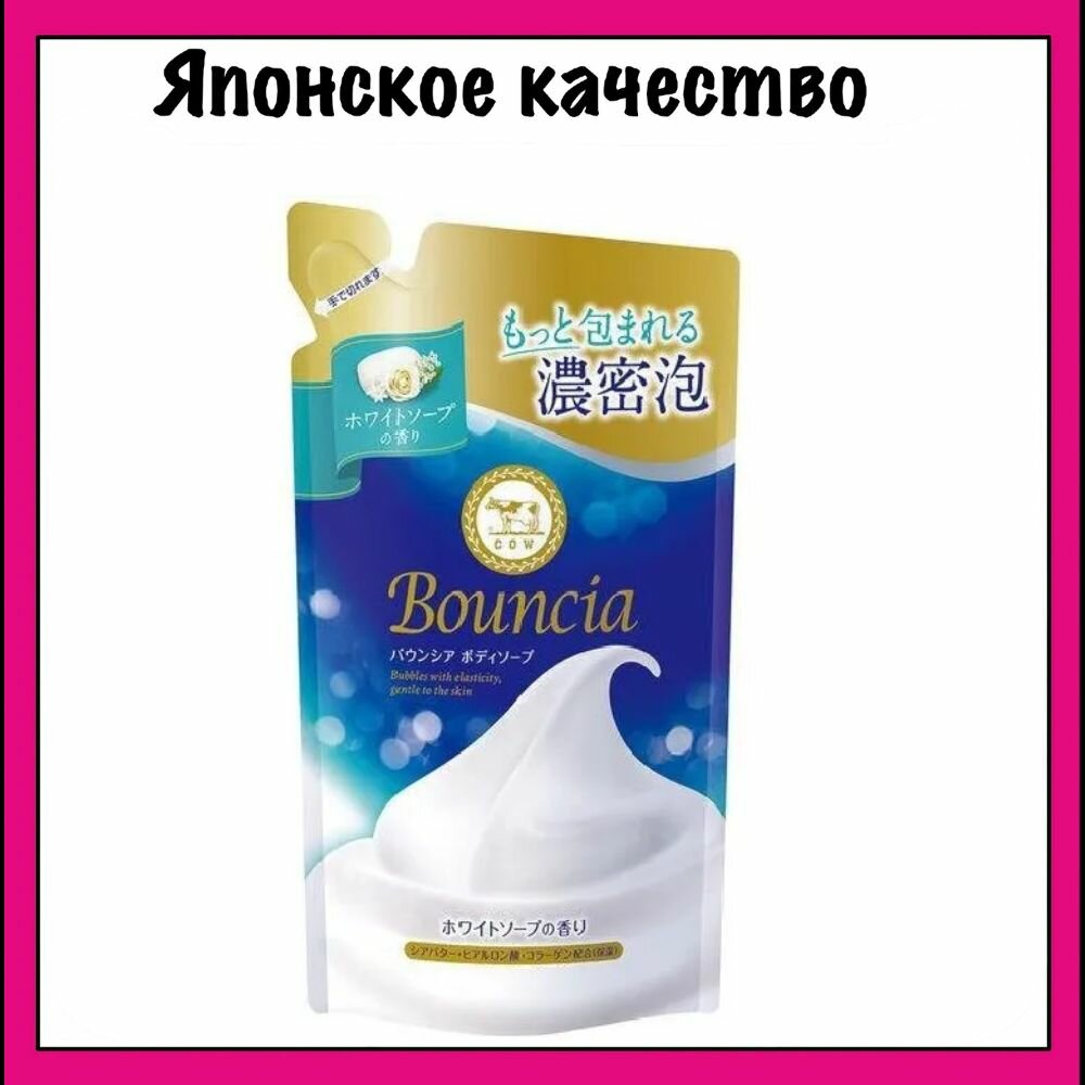 Жидкое мыло для тела и рук Cow Brand Bouncia Сливочное с гиалуроновой кислотой и коллагеном аромат свежести , в мягкой упаковке 400 мл