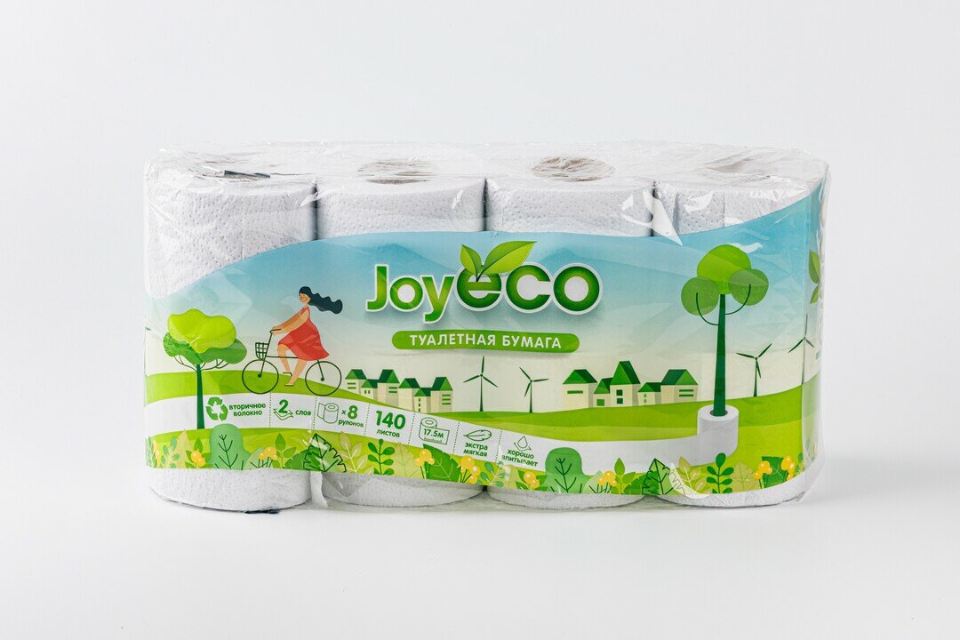 Бумага туалетная JoyEco белая втор, 2 сл, 17,5м, 8 шт/уп