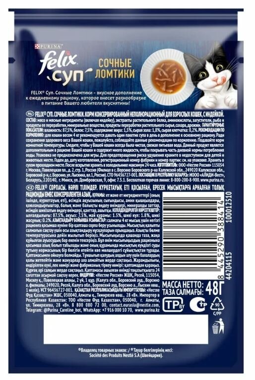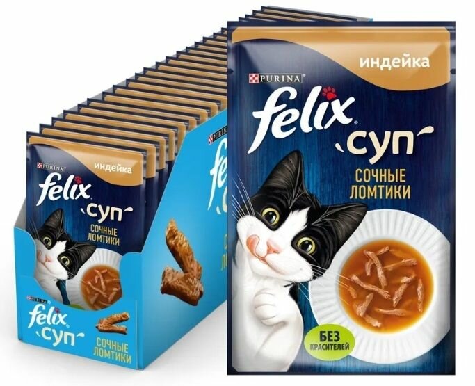 Ниже Вы можете прочитать отзывы на Felix суп Сочные ломтики 48 г пауч влажный корм для взрослых кошек, с индейкой 36 штук, ознакомится с подробными характеристиками, посмотреть интересные обзоры и фотографии на Felix суп Сочные ломтики 48 г пауч влажный корм для взрослых кошек, с индейкой 36 штук.