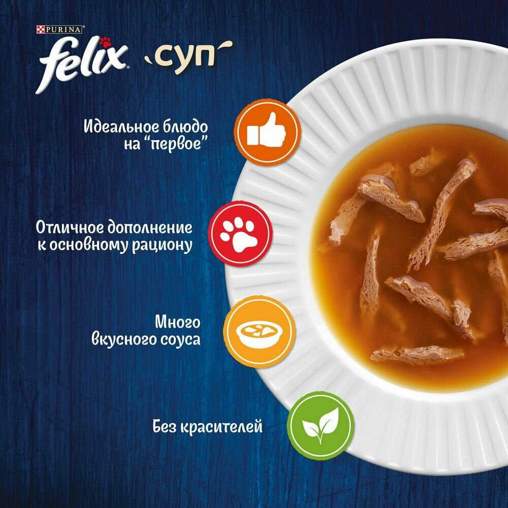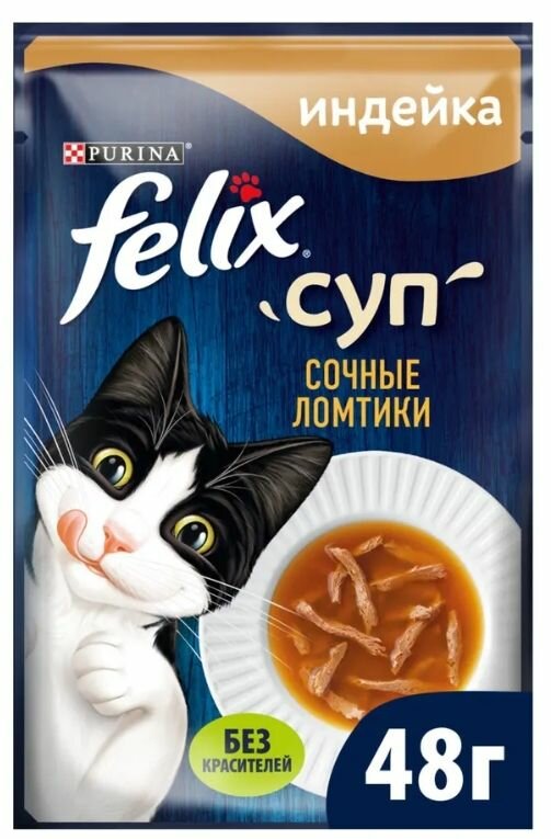 Купить Felix суп Сочные ломтики 48 г пауч влажный корм для взрослых кошек, с индейкой 36 штук