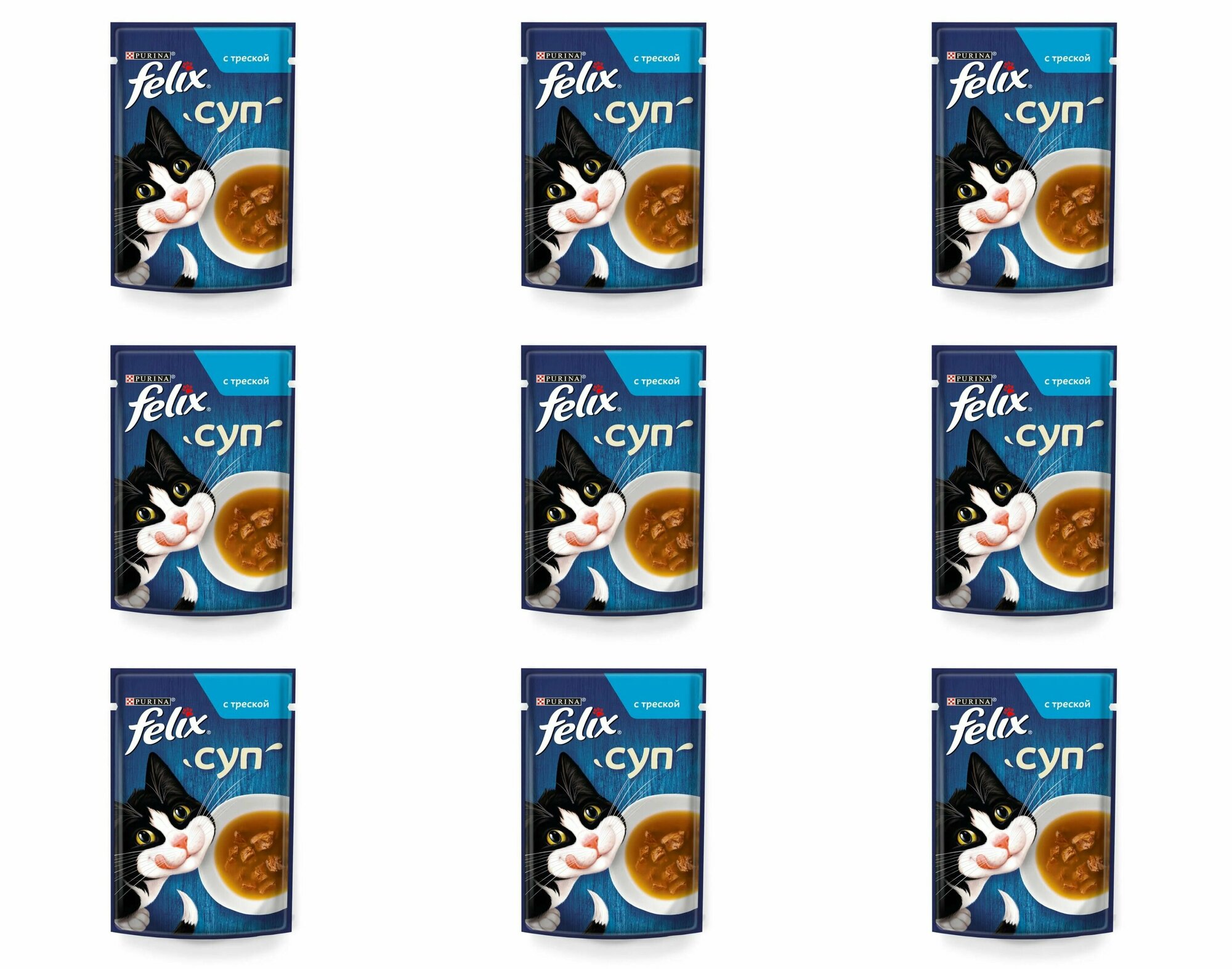 Влажный корм Felix Суп для взрослых кошек, с треской пауч, 48г х 9 шт