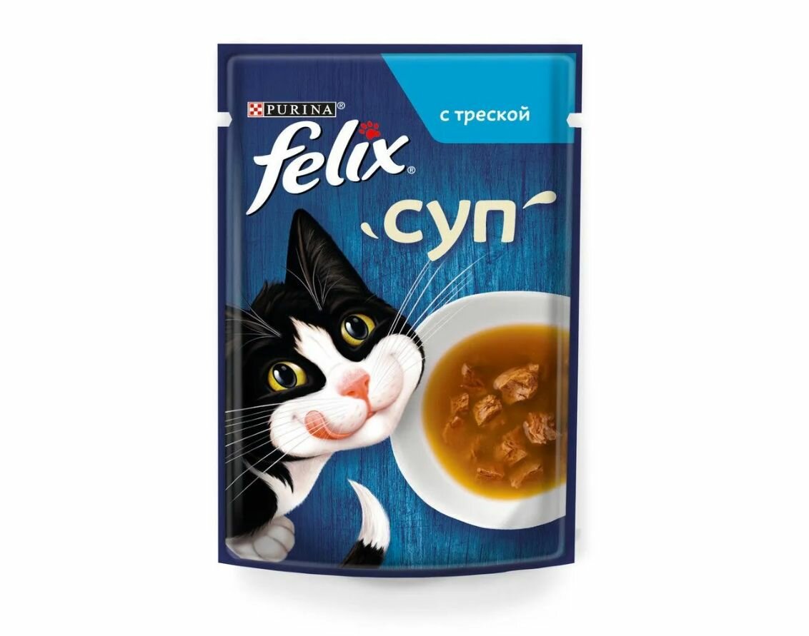 Влажный корм Felix Суп для взрослых кошек, с треской пауч, 48г х 26 шт