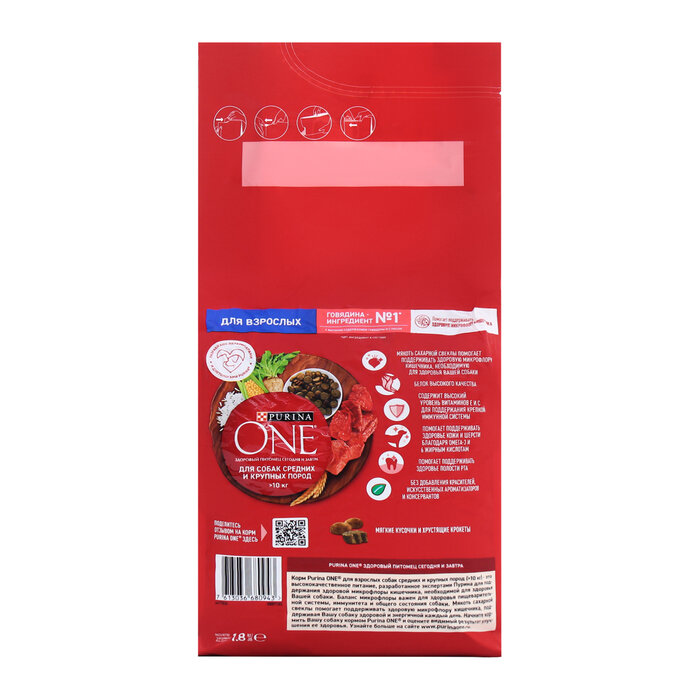 Купить PURINA ONE 1,8 кг сухой корм для взрослых собак средних и крупных пород, с высоким содержанием говядины и с рисом