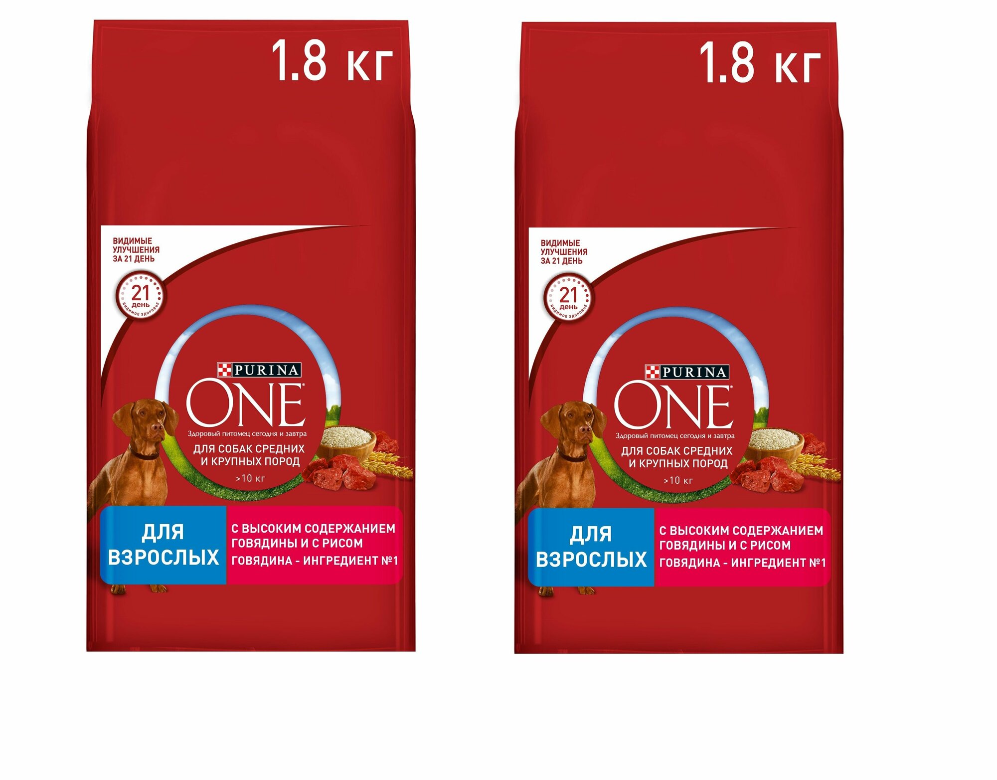 Купить Сухой корм Purina ONE для взрослых собак средних и крупных пород, с высоким содержанием говядины и с рисом 1,8 кг, 2 шт