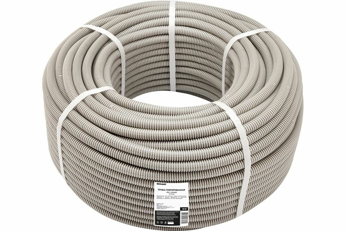Гофрированная труба из ПВХ REXANT с зондом d 25 мм серая 50 м 28-0025-2