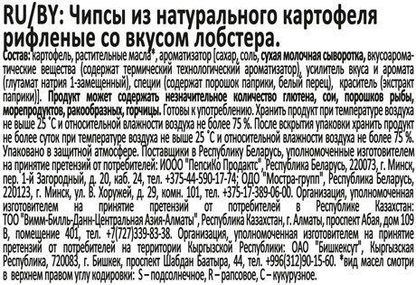 Чипсы Lay's 140-150г/Рифленые/Лобстер