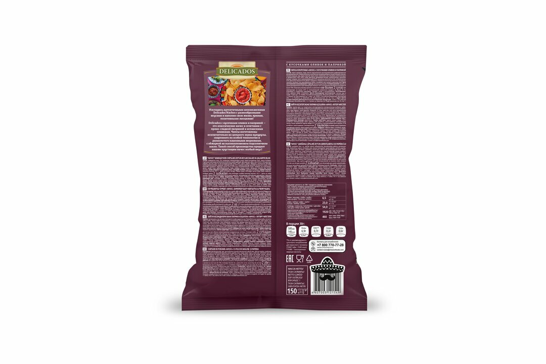 Чипсы кукурузные натуральные с кусочками оливок и паприкой DELICADOS 150 г