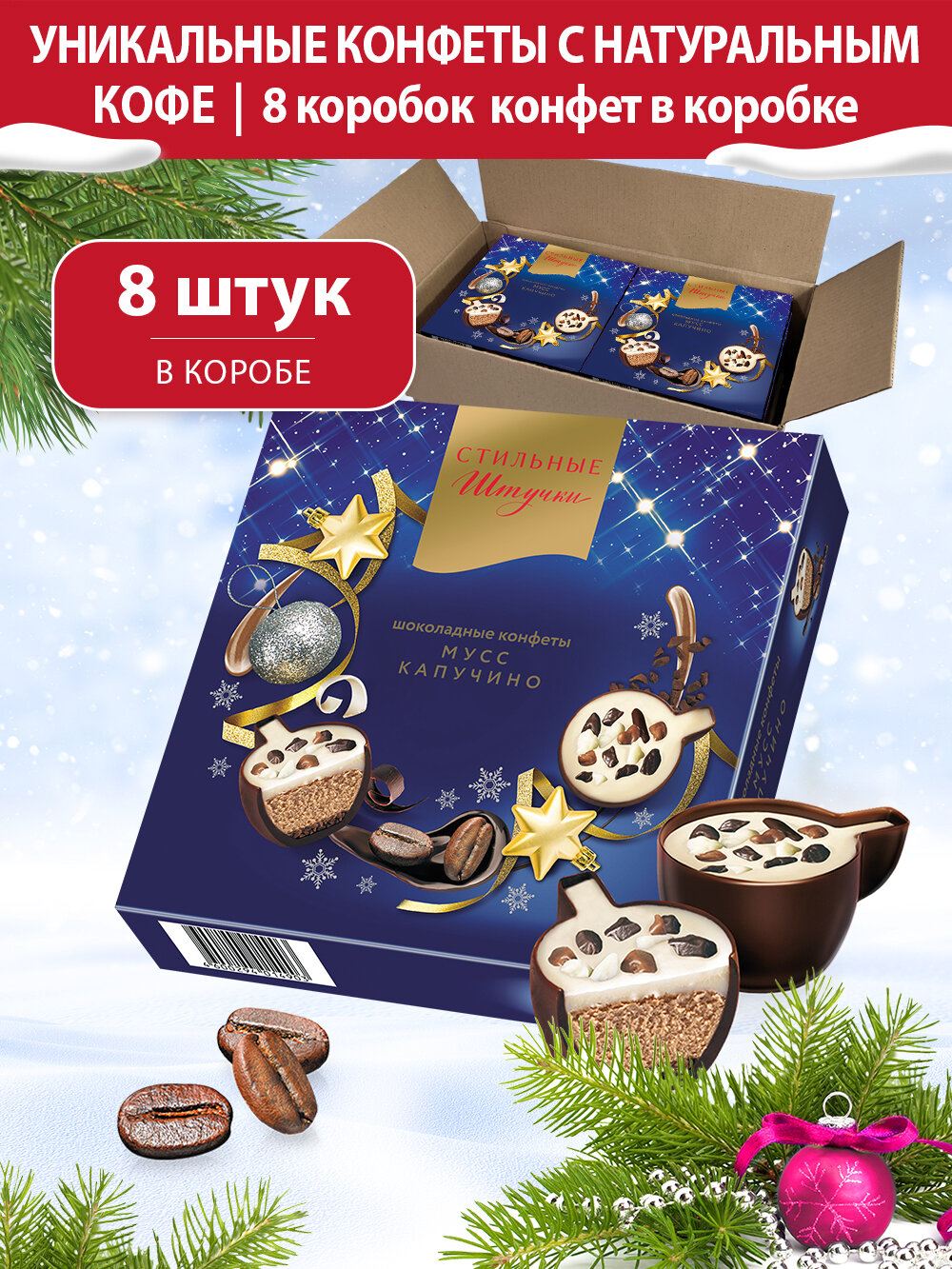 Купить Конфеты шоколадные Стильные штучки Мусс капучино подарочные в новогодней коробке, 8 шт по 104 г