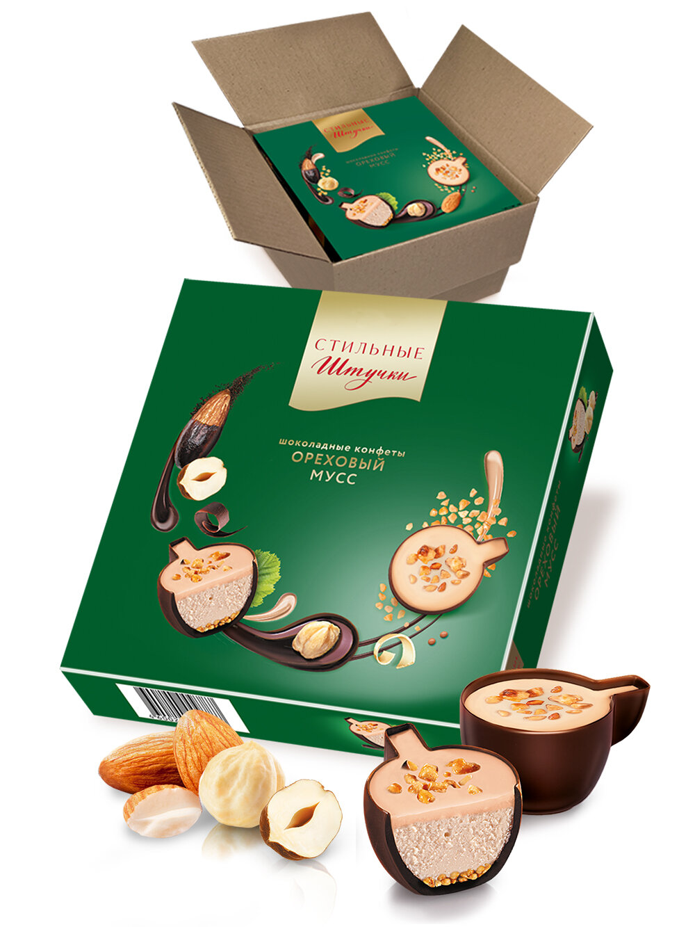 Конфеты шоколадные Стильные штучки Ореховый мусс подарочные в новогодней коробке, 8 шт по 104 г