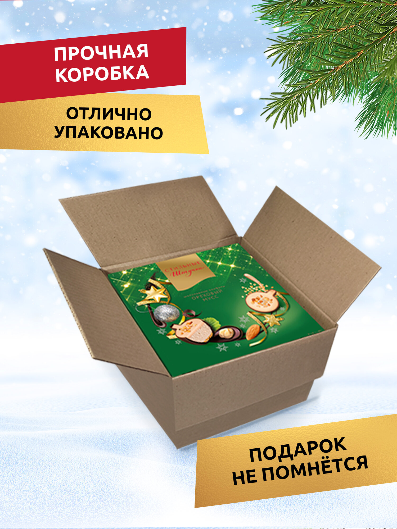 СохранитьКонфеты шоколадные Стильные штучки Ореховый мусс подарочные в новогодней коробке, 3 шт по 104 г интересное: