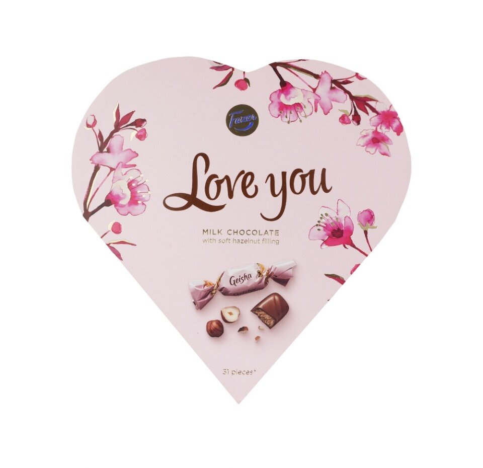 Конфеты Fazer Geisha молочный шоколад с фундуком и нугой (Сердце), 225 г (Финляндия)