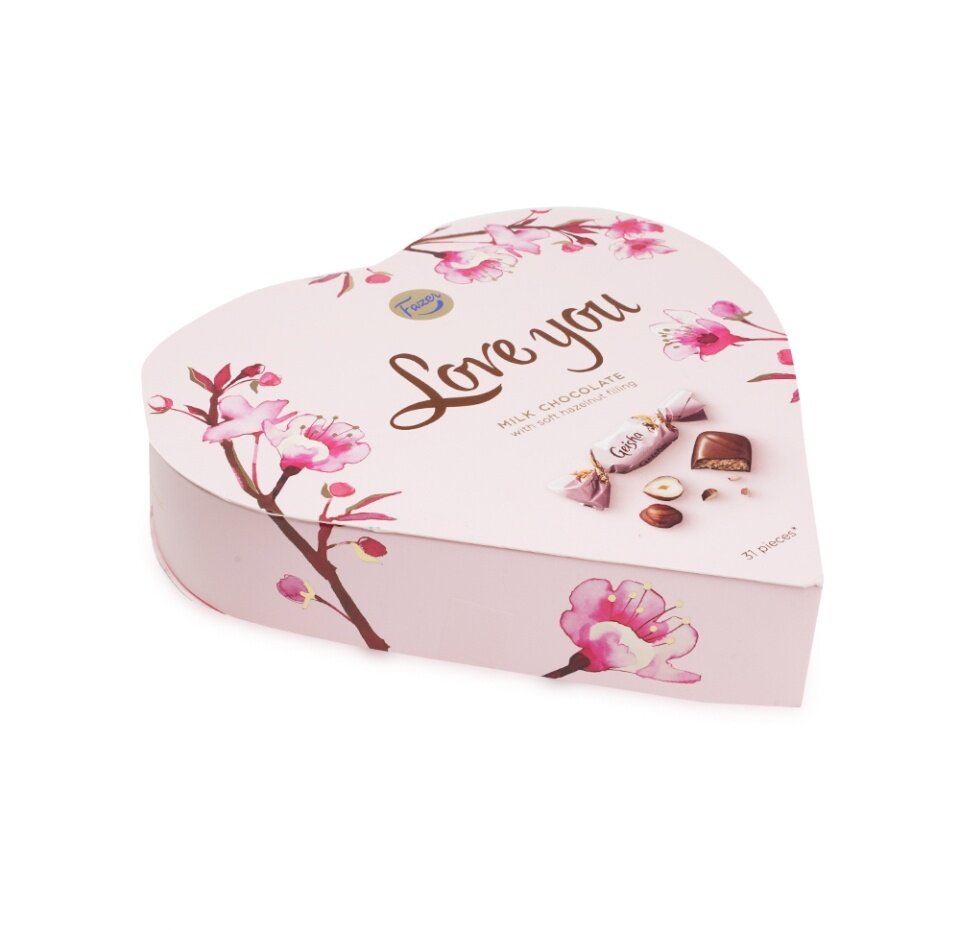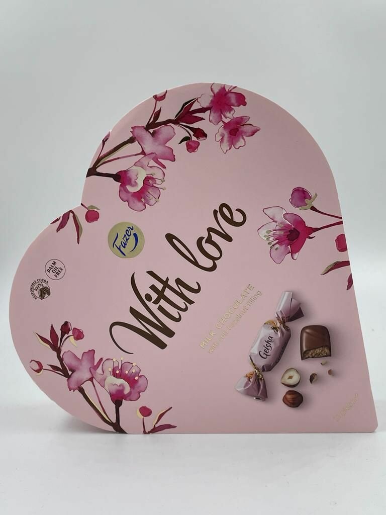 Шоколадное сердце конфеты Fazer Geisha из молочного шоколада с фундуком и нугой 225 г (из Финляндии)