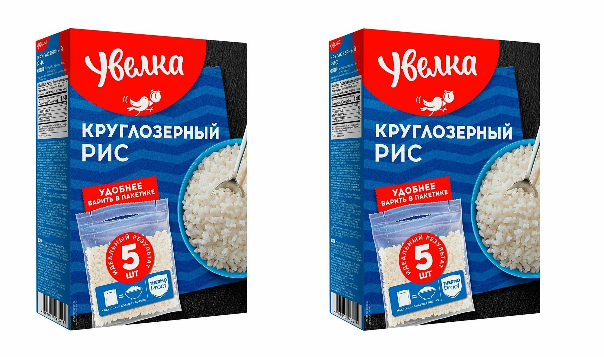 Рис Увелка круглозерный шлифованный в пакетиках для варки, 5х80 г