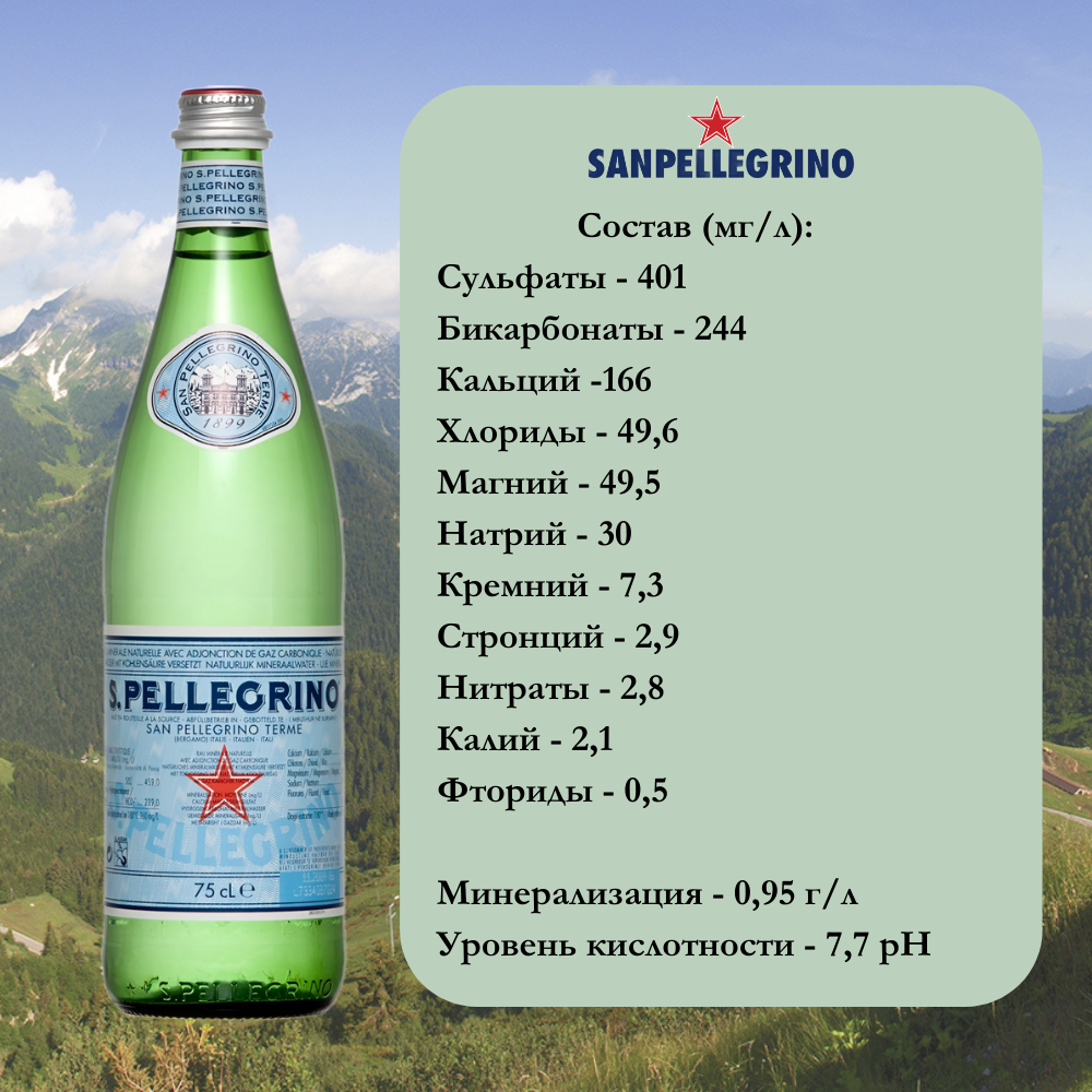 Ниже Вы можете прочитать отзывы на Вода минеральная San Pellegrino (Сан Пеллегрино) 15 шт. по 0.75 л, газированная, стекло, ознакомится с подробными характеристиками, посмотреть интересные обзоры и фотографии на Вода минеральная San Pellegrino (Сан Пеллегрино) 15 шт. по 0.75 л, газированная, стекло.