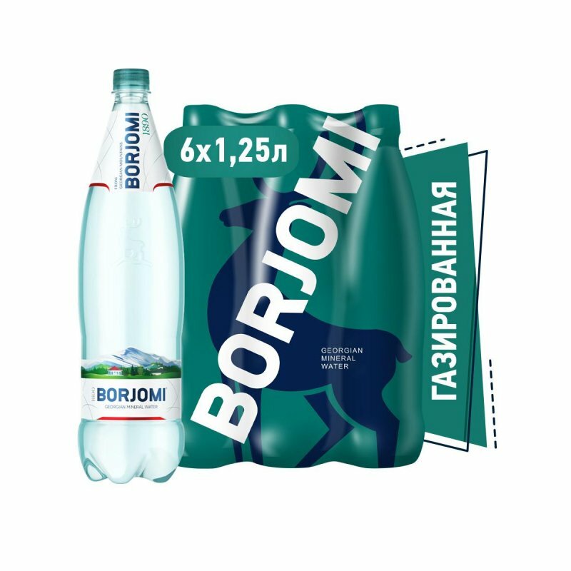Минеральная вода Borjomi / Боржоми газированная ПЭТ 1.25 л (6 штук)