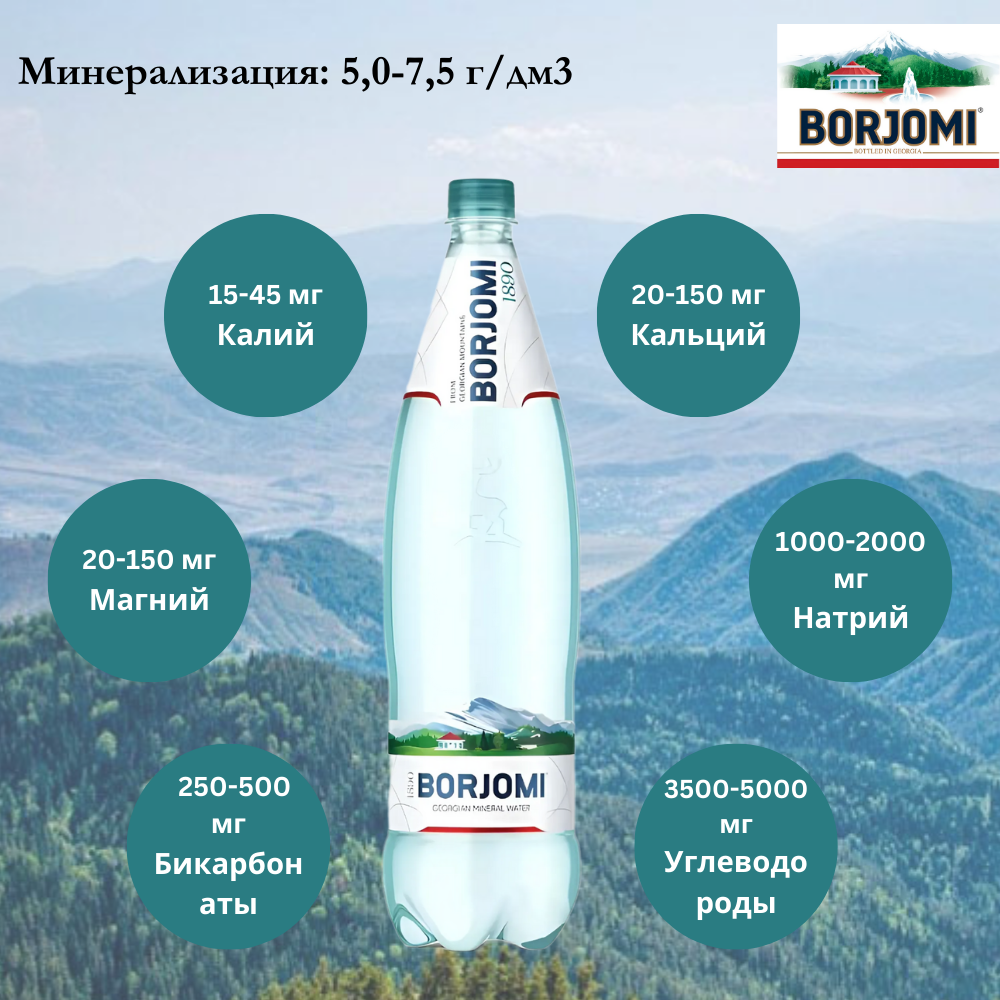 СохранитьВода минеральная Borjomi (Боржоми) лечебно-столовая, 1,25 л х 6 шт, газированная, пэт интересное: