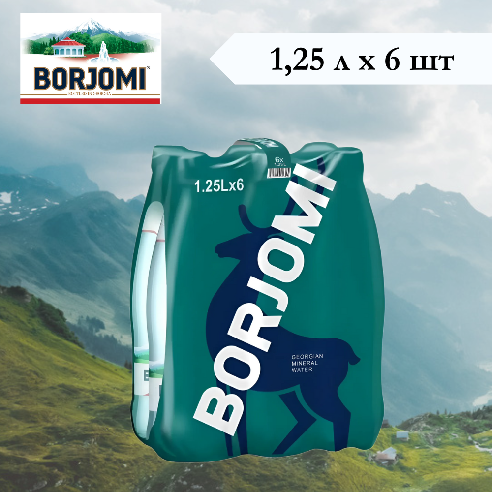 Купить Вода минеральная Borjomi (Боржоми) лечебно-столовая, 1,25 л х 6 шт, газированная, пэт