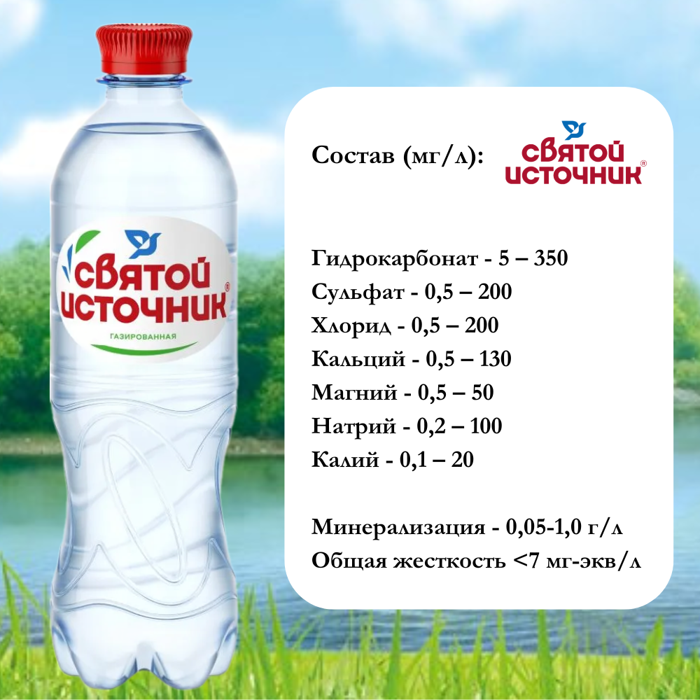 Вода питьевая Святой Источник газированная, ПЭТ 0.5 л