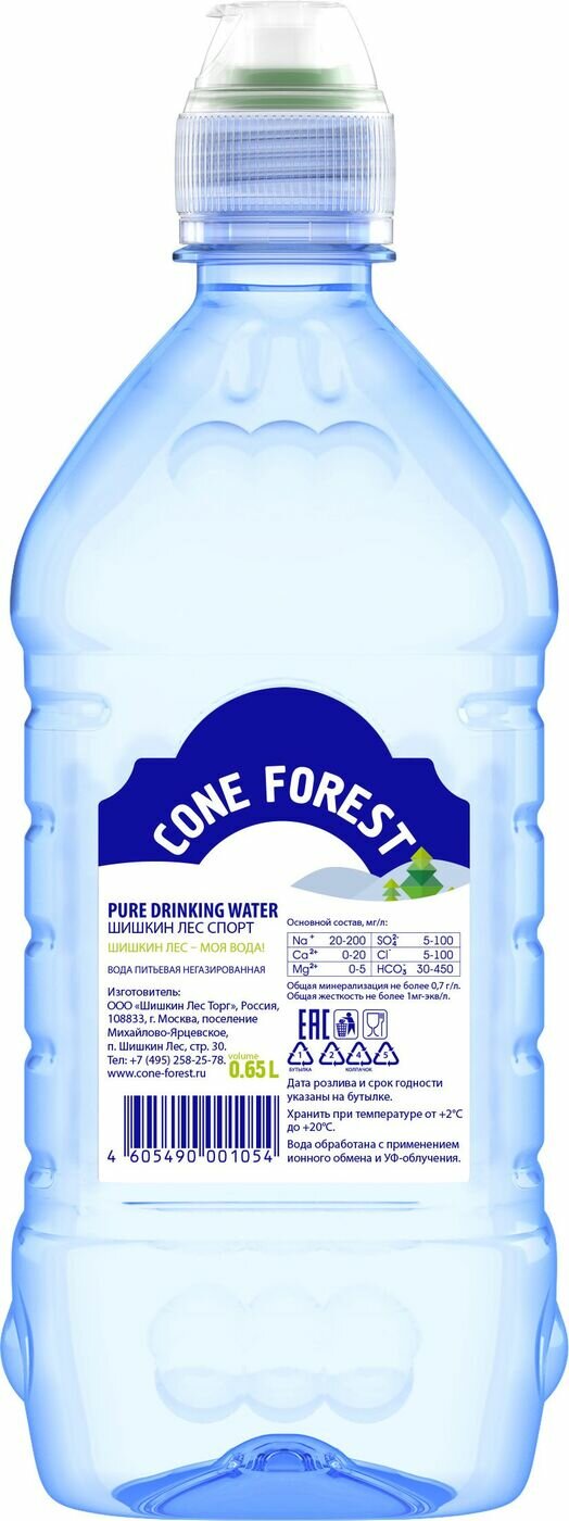 Вода питьевая шишкин ЛЕС Спорт негазированная, 0.65л
