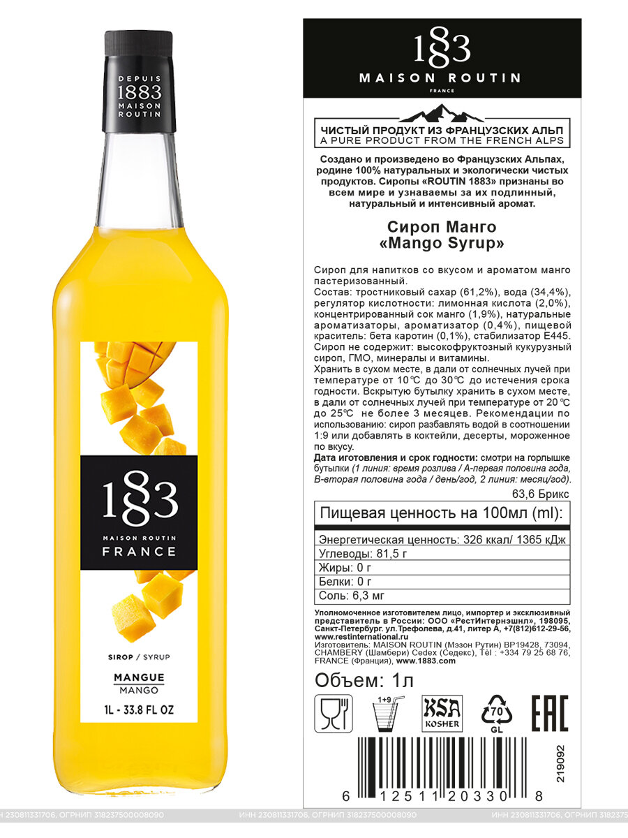 Сироп 1883 Maison Routin Mango (Манго), 1л