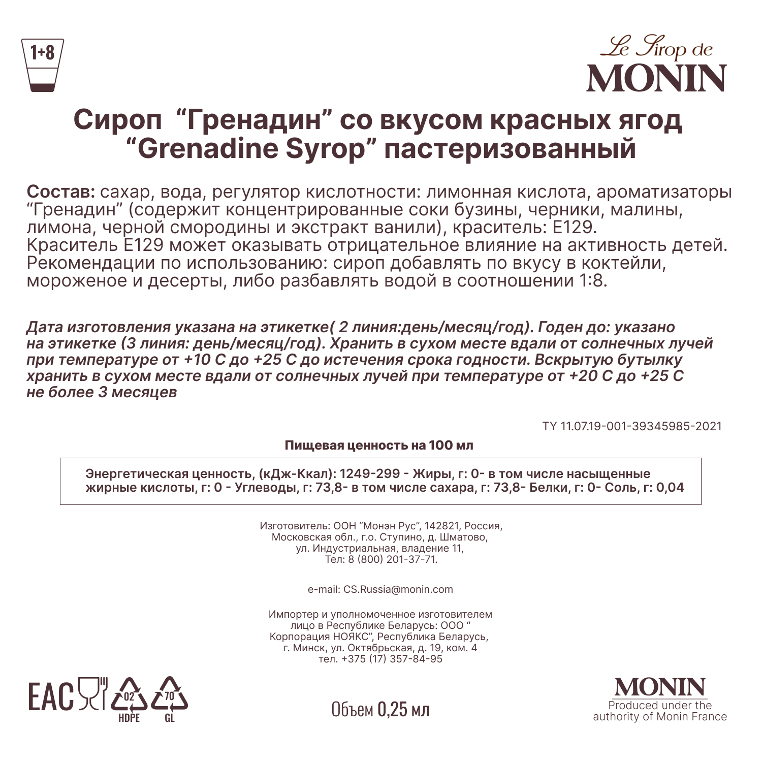 Ниже Вы можете прочитать отзывы на Сироп Monin Гренадин, 250 мл, ознакомится с подробными характеристиками, посмотреть интересные обзоры и фотографии на Сироп Monin Гренадин, 250 мл.