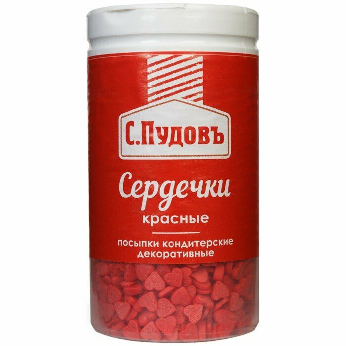 Посыпка «С.Пудовъ», сердечки, красная, 45 г