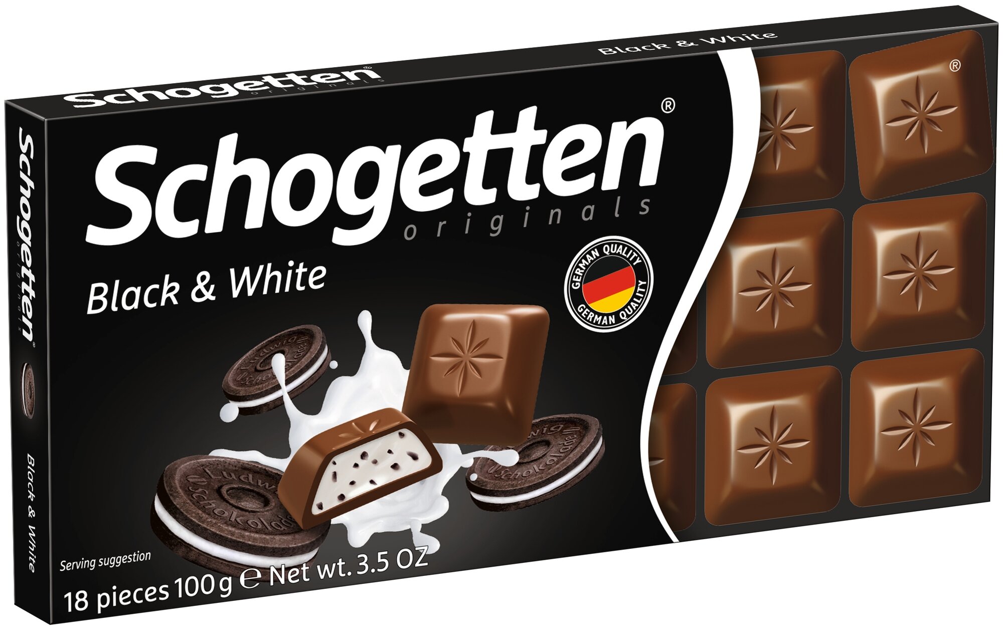Шоколад молочный Schogetten Black&White с кусочками печенья, 100г